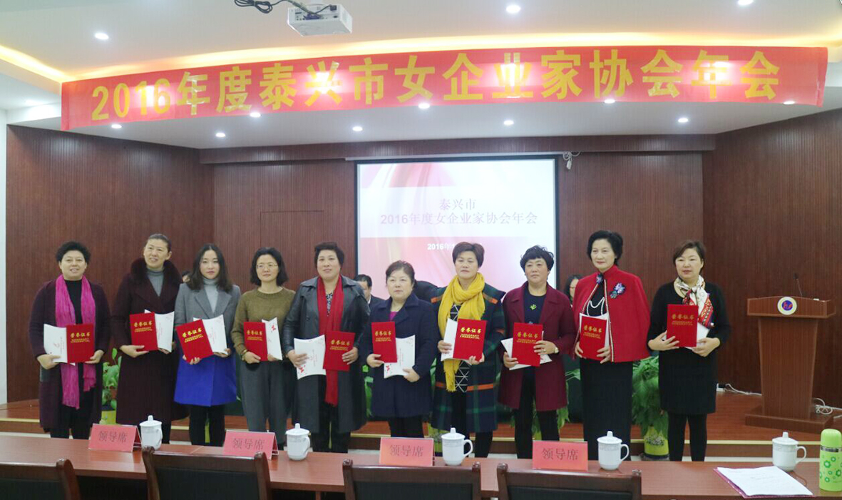 會上泰興市常 委、組織部長鞠林紅為洪總等十位女企 業家頒發了2016年度“熱心公益事業積極分子”榮譽證書,對“積極分子”在2016年的辛勤工作表示了感謝,并對2017年的工作提出了殷切希望。