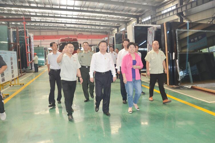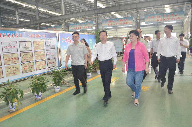 泰興市委常委、常務副市長劉榮華(左二),副市長錢軍(右一)在洪愛萍總經理陪同下查看我司安全、文化看板