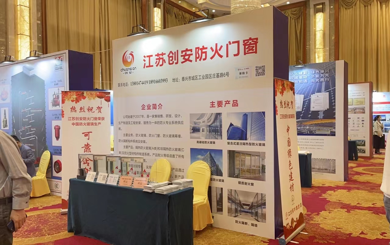 大會同時舉辦建筑消防優(yōu)秀部品展示宣傳,加強對建筑消防行業(yè)新技術、新產(chǎn)品、新工藝的了解,共同推動行業(yè)健康發(fā)展。創(chuàng)安防火門窗應邀參展,創(chuàng)安展出的防火玻璃單片、復合防火玻璃等新品,吸引了大批與會嘉賓代表現(xiàn)場觀摩,有的人表達了合作的意向。這對宣介創(chuàng)安防火門窗公司,推廣防火新品,提高在行業(yè)的知名度具有積極的作用和意義。