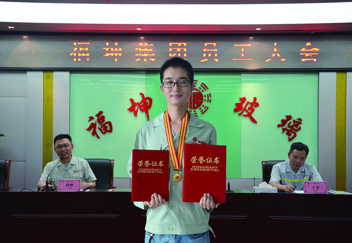 為了能更快更好的學到本領,他從補片開始,先從一張板切一塊,再到一張板切幾塊,再到大批量的使用原片生產,有時候切一天零散單也忙不出多少產量,為了盡快的將零散單切結束,吃飯時間他也不忘與班長和師 傅請教、探討,借鑒他們工作的方法,學習他們的操作經驗,終于得 到了“要多練習”的真傳。 時間是最 好的見證,經過四年多的磨練,不管是他的排版速度,版面切裁率的控制,還是工作效率等都大幅度提升,現在可以說指哪兒打哪兒,能安 全高 效的完成任何切割生產任務,成為獨當一面的好手。2016年,公司推出評選“福坤工匠”的激勵機制,鼓勵一線員工、主操手鉆研技術,樹立人人爭當福坤工匠學技術的潮流,激起了他不服輸的勁頭,他主動向生產部門提出了“智能優化排版切裁操作法”的初步設想,得 到公司和生產部門的大力支持和肯定,公司組建了以生產、技術部門負責人丁榮為組長,卞俊棟為第—執行人的研發團隊,通過多次摸索攻關,不斷總結經驗,最 終獲得了成功。每年為公司提高切裁率百分之5~8,提高生產綜合效率百分之5以上。 四年多來經他手安 全切割各類版面各種尺寸玻璃累計超過一百三十萬平 米,2019年第—、二季度既要帶徒,又要兼顧生產管理,經他手切割超十萬平 米玻璃從未出錯,展望未來,他表示成績和榮譽屬于過去,今后將一如既往加強學習,不斷提升自己的工作技能,爭取做出更大的成績。