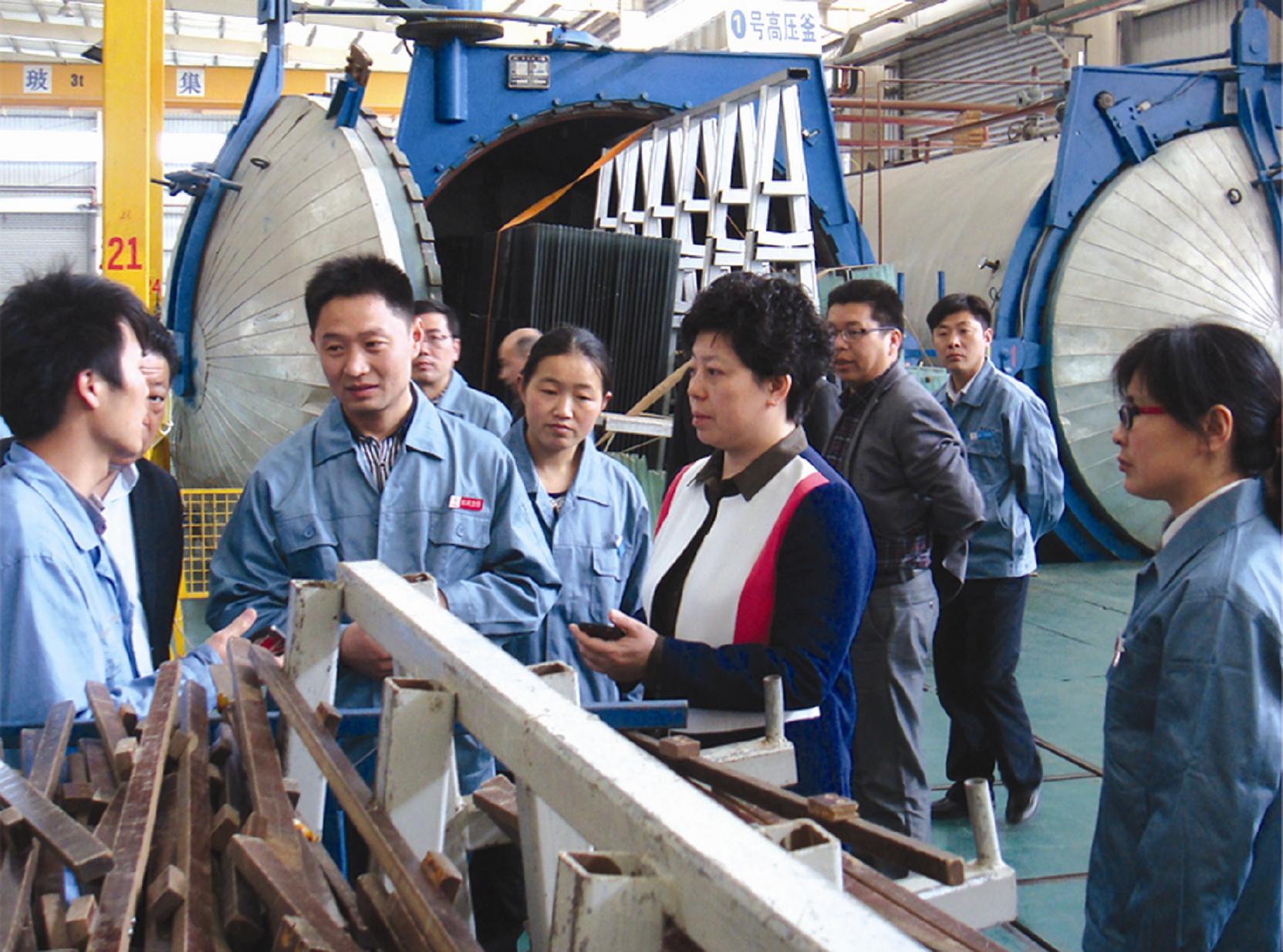 洪總與吳江南玻夾層線技術人員探討生產工藝
